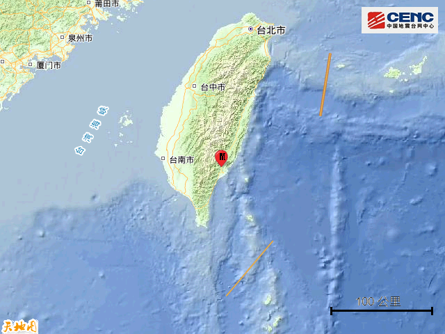 据中国地震台网正式测定,12月24日17时47分在台湾台东县发生5.8级地震,震源深度10公里,震中位于北纬22.86度,东经121.12度。