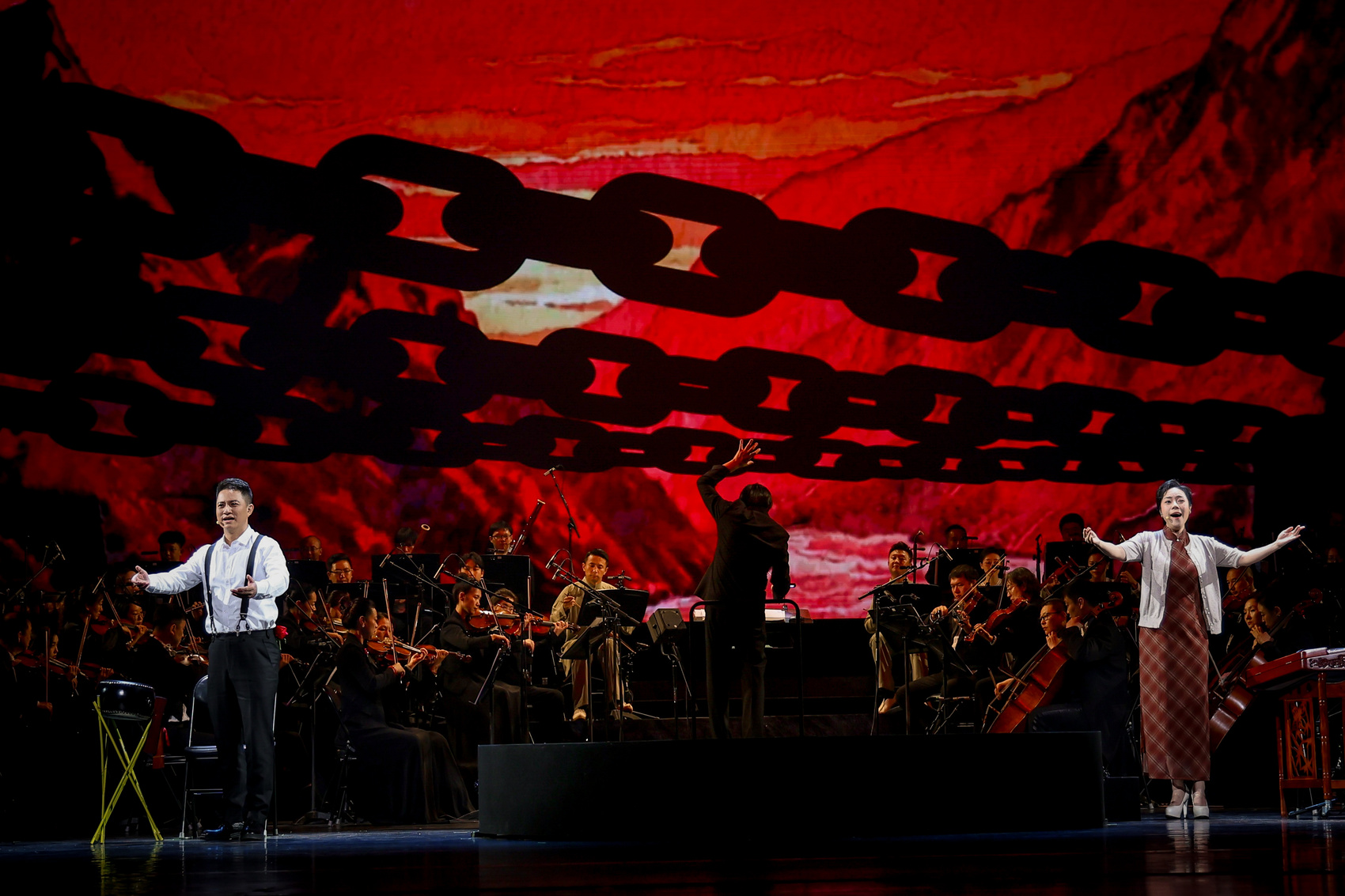 很多观众对《情定泸定桥》印象深刻,还在于其面貌一新的曲艺形式。四川扬琴原本是坐唱,主创团队将其“洋化”,不仅改为站唱,还带上了一定的歌剧表演特色和状态。黄宏说,经过这样一番转化,扬琴也呈现出明亮、明朗的艺术风格,其表现力不输于一些歌剧作品。