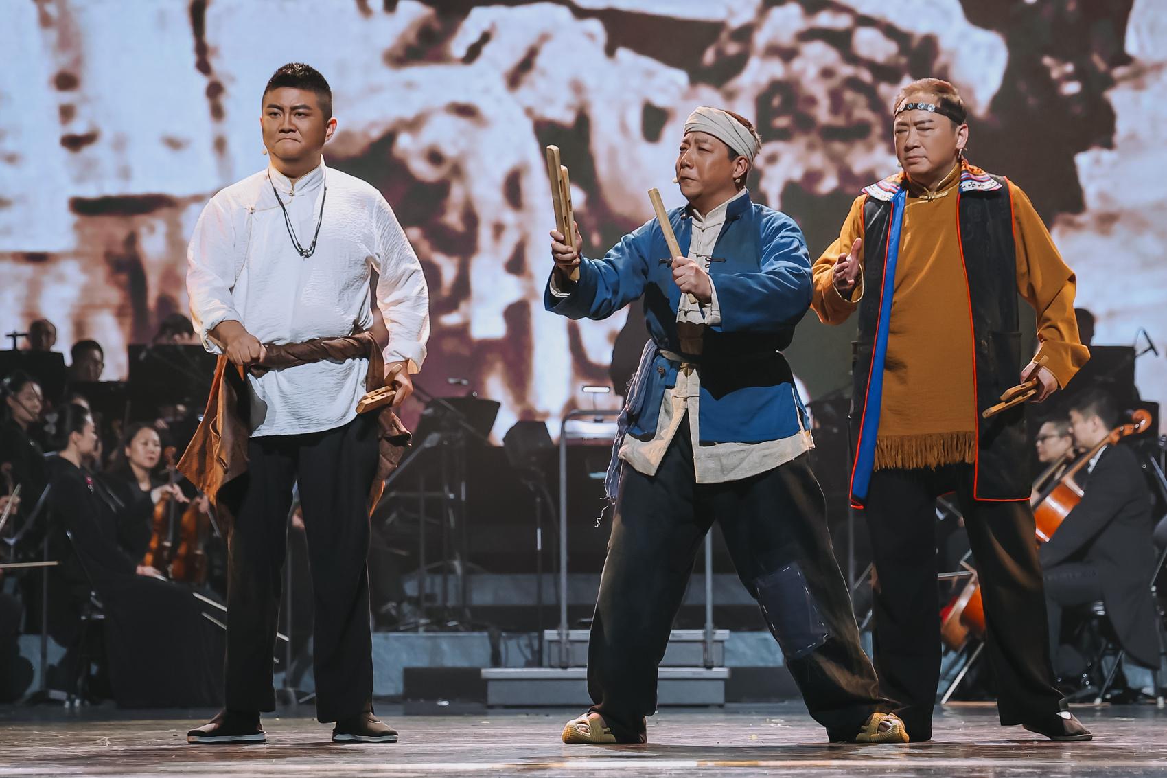 但是,做着做着,主创团队觉得“不够了”,偌大一个舞台,传统曲艺表演形式有点“空”。“所以做成了‘曲艺音诗画’。”以音乐为例,黄宏介绍,《伊莎白》探索了民族乐和管弦乐的结合。传统曲艺,基本是根据演员的拖腔拖调伴奏,管弦乐通常有严格的节奏和卡点,需要相互适应。“首先尊重曲艺,例如一段四川清音出了小样,我们才给编曲进行配器和演奏。”