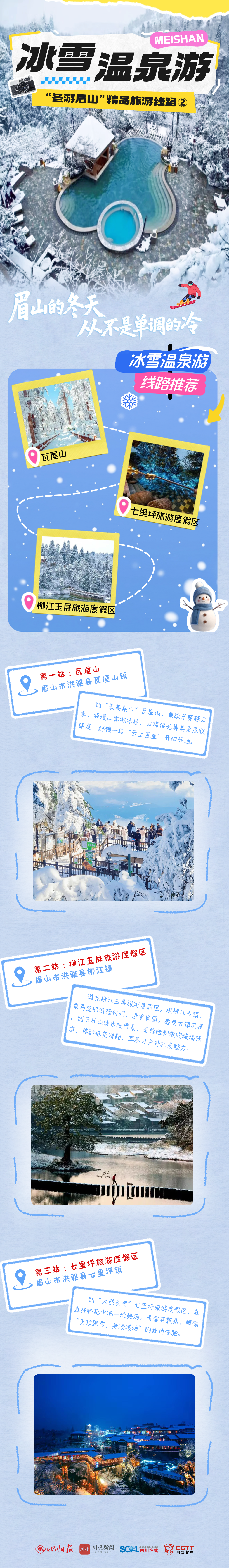 无玩雪,不冬天!玩雪不一定要去北方,眉山就有现实版的冰雪童话世界。跟着今天这条“冰雪温泉游”线路,来眉山解锁冬日“冰与火”的冬日极致体验。