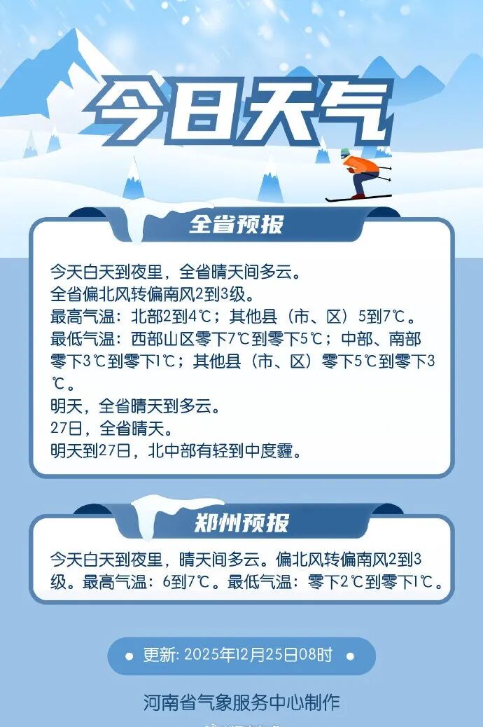 今明两天,河南全省的气温将触及近期的谷底。受弱冷空气持续影响,除南部部分地区外,全省大部最高气温将维持在5℃上下,最低气温更是持续在冰点以下徘徊。