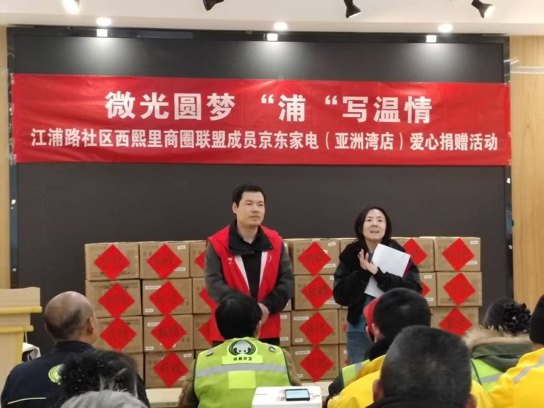 12月23日,成都市温江区涌泉街道江浦路社区,一场由“西熙里商圈联盟”成员单位京东家电(亚洲湾店)发起的“微光圆梦”暖冬捐赠活动圆满举行。京东家电(亚洲湾店)作为联盟爱心成员,主动向社区捐赠了40个全新的品牌电饭煲。社区党委副书记张越代表社区接受捐赠,并向商家颁发了“爱心商家”荣誉证书。