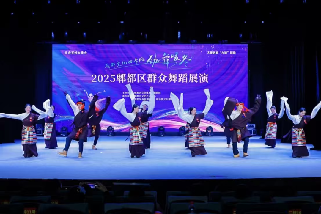 近日,由郫都区文化体育和旅游局主办,郫都区文化艺术中心及各街道(镇)综合性文化服务中心承办的2025郫都区“成都文化四季风·劲舞暖冬”群众舞蹈展演活动在郫都区文化馆圆满举办。来自全区的20多支舞蹈队伍近300名舞者轮番登台,用灵动的舞步、饱满的热情,为现场观众献上了一场视觉盛宴,展现了郫都群众蓬勃向上的文化活力,传递出迎接新年的喜悦与朝气。
