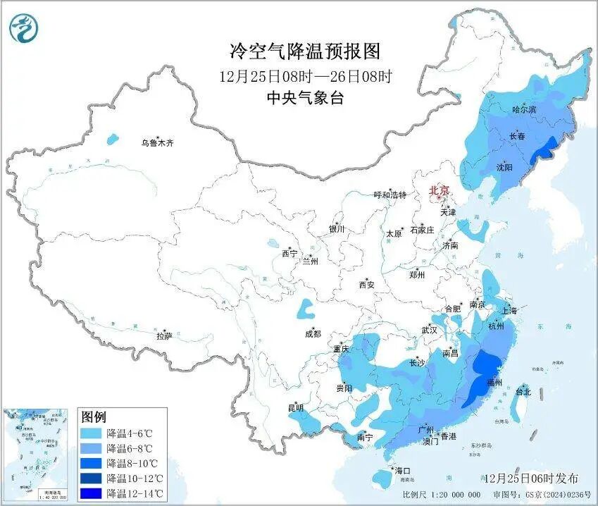 25日11时到26日20时,全省晴有时多云;最低气温抚顺、铁岭地区-31℃到-26℃,沈阳、本溪、阜新地区和沈抚示范区-25℃到-21℃,大连地区-14℃到-10℃,其他地区-20℃到-15℃;最高气温大连地区-2℃到2℃,沈阳、抚顺、本溪、铁岭地区和沈抚示范区-12℃到-9℃,其他地区-8℃到-3℃。