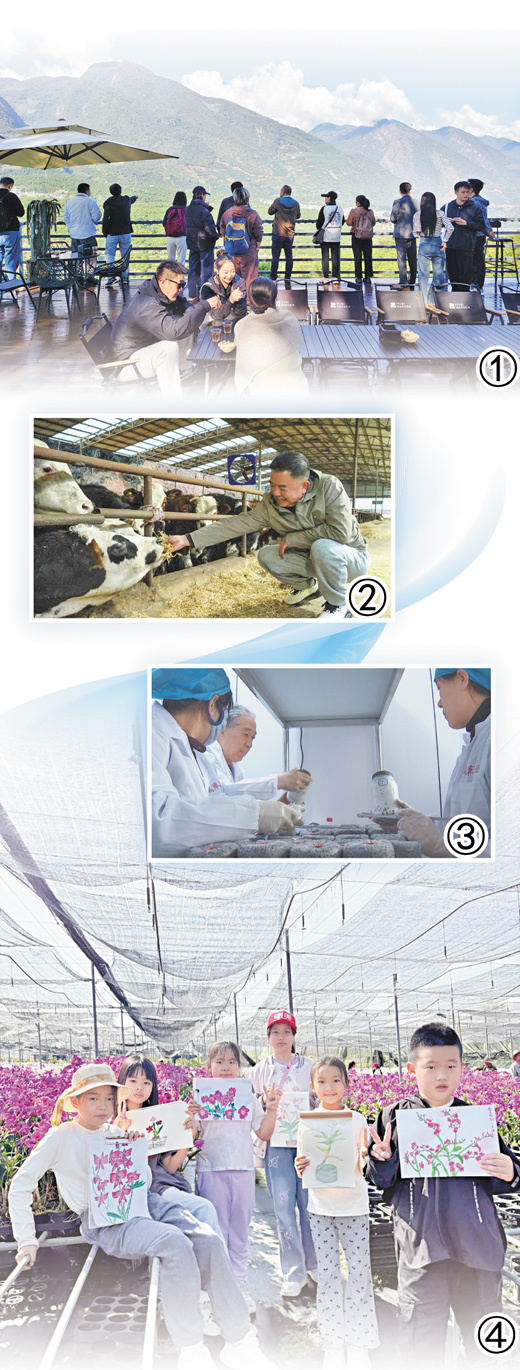 图①:云南保山市新寨村,游客在品尝咖啡。 保山市隆阳区委宣传部供图 图②:村民在金旺达林牧发展有限公司产业园区喂牛。 刘兆春摄(人民视觉) 图③:研发人员在牟荣村菌菇产业基地做实验。 马佳伟摄(人民视觉) 图④:孩子们在乐妹村写生。 卢 萍摄(人民视觉)