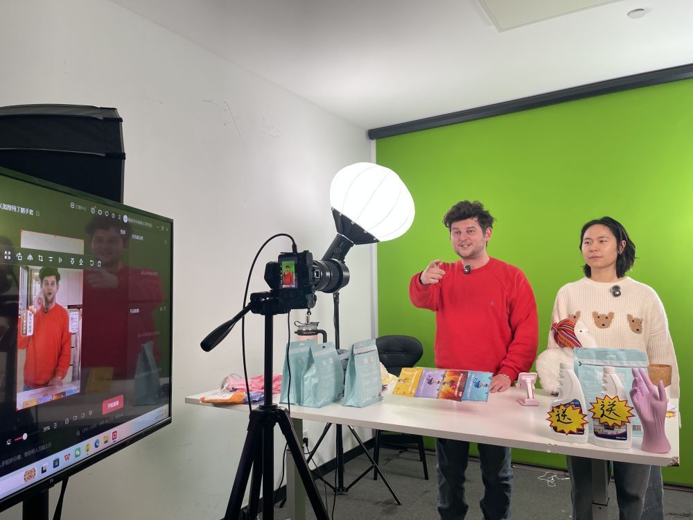 虹桥品汇直播基地的直播间内,不少“洋主播”正在镜头前带货。新华社发