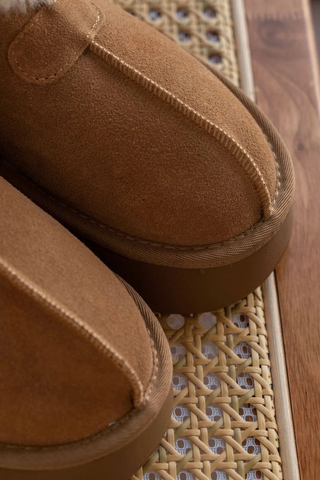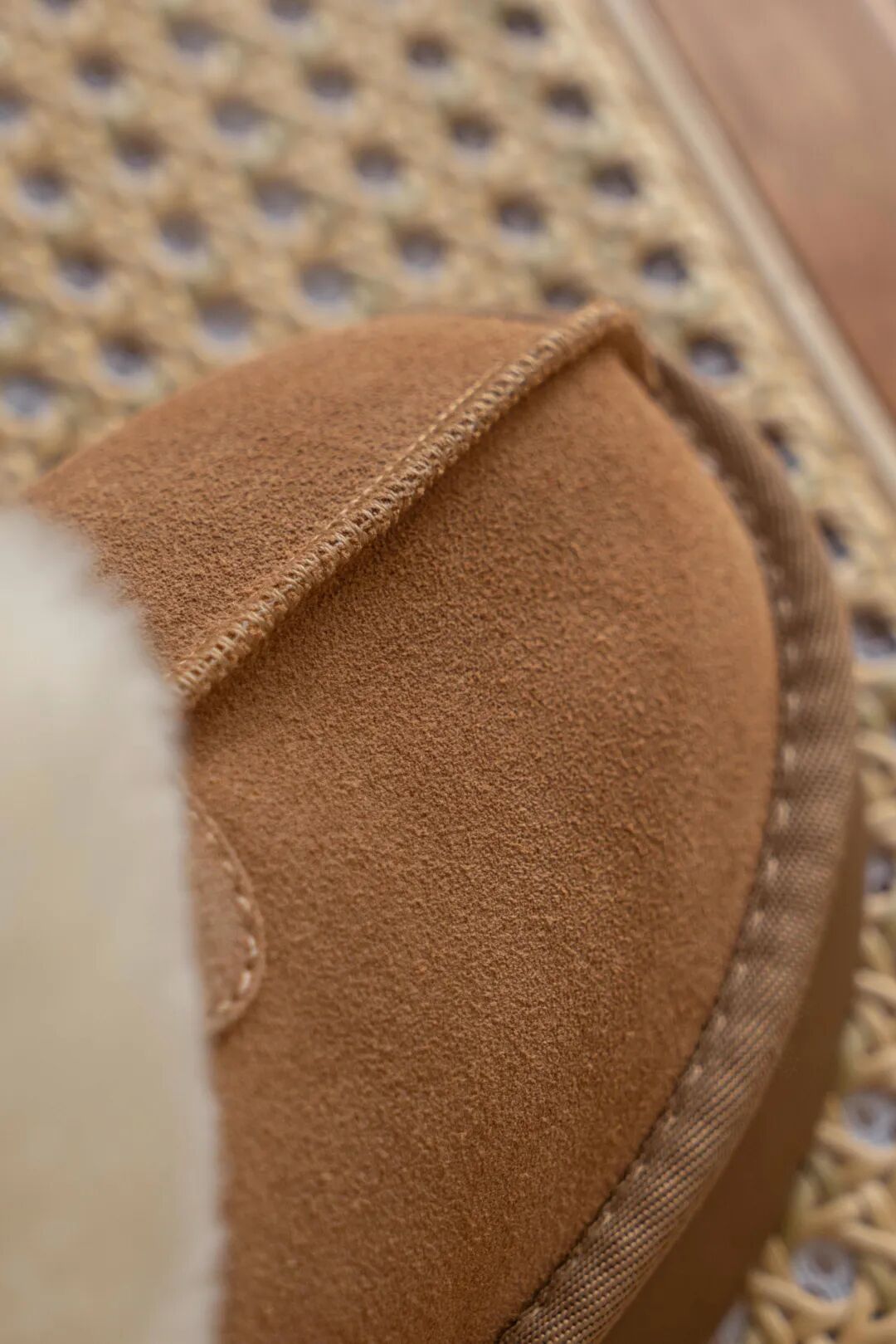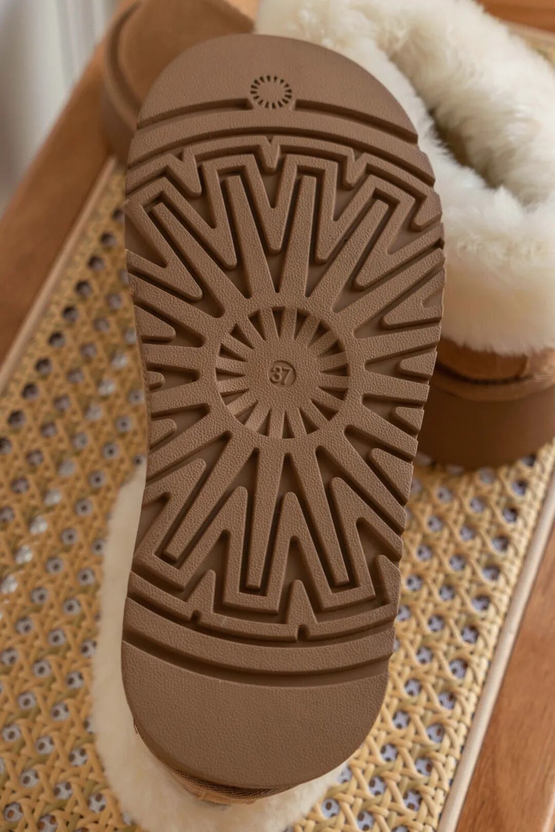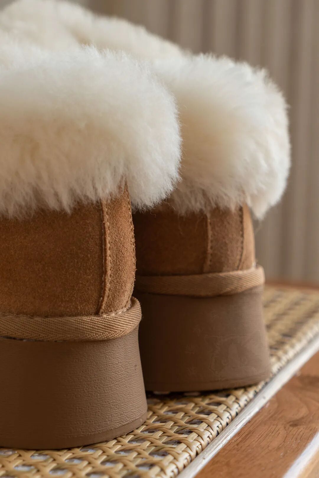 PLAT BASE 家靴口专属羊皮毛一体设计,不是分层假毛,是毛根连皮的真羊皮毛,裹脚腕如戴柔软羊毛领。