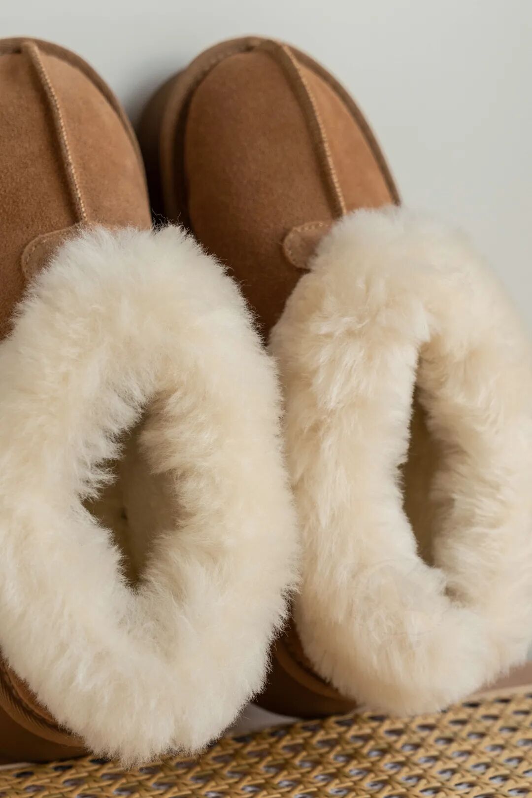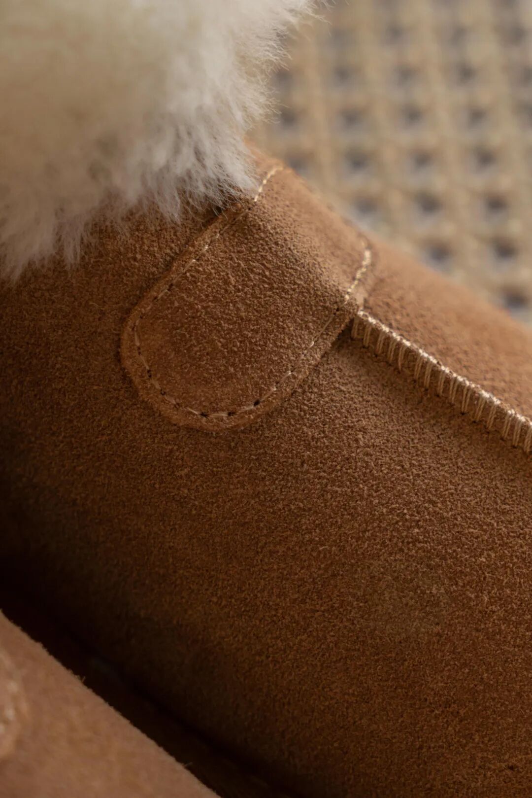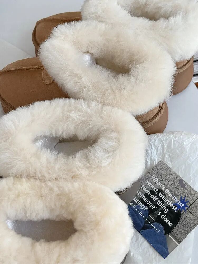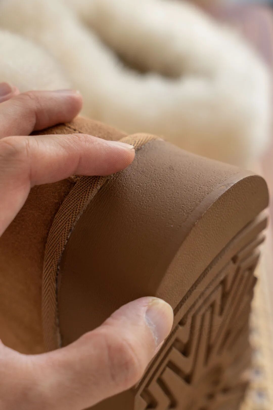 羊皮毛一体靴口 + 羊毛内里,手感蓬松厚实、锁温力拉满。