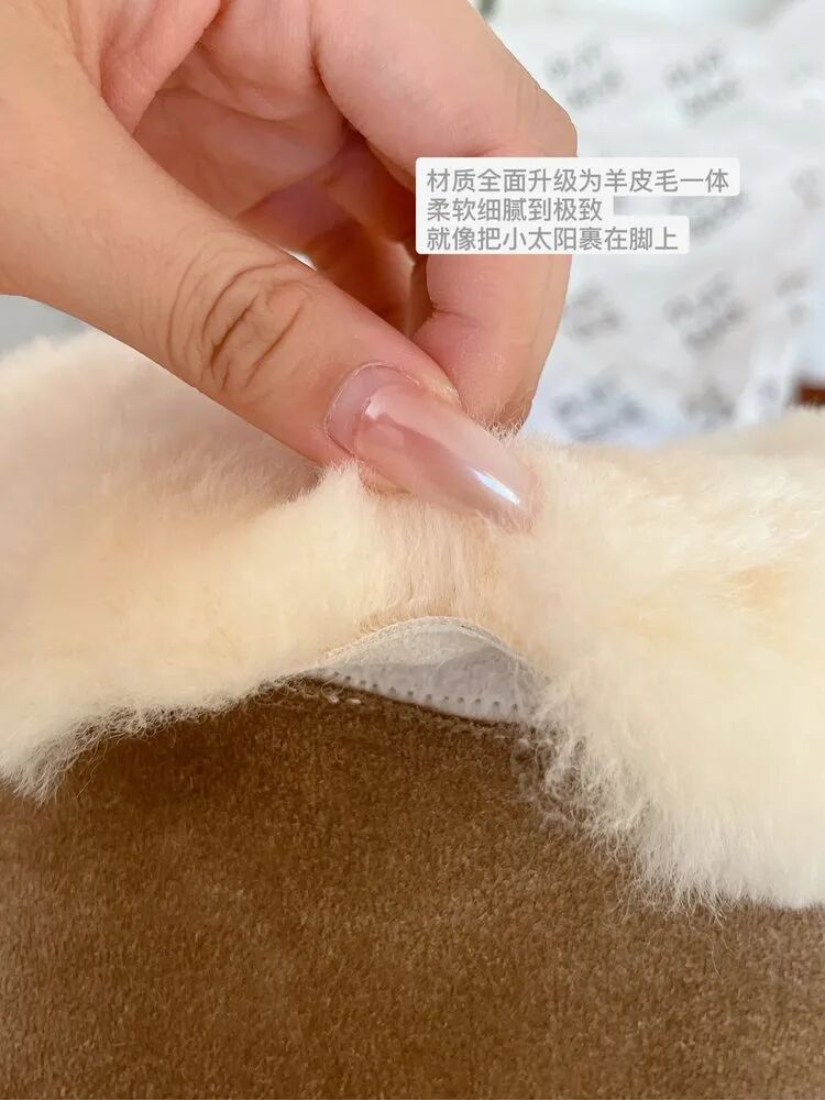 羊皮毛一体靴口,真材实料,冬日暖乎乎。