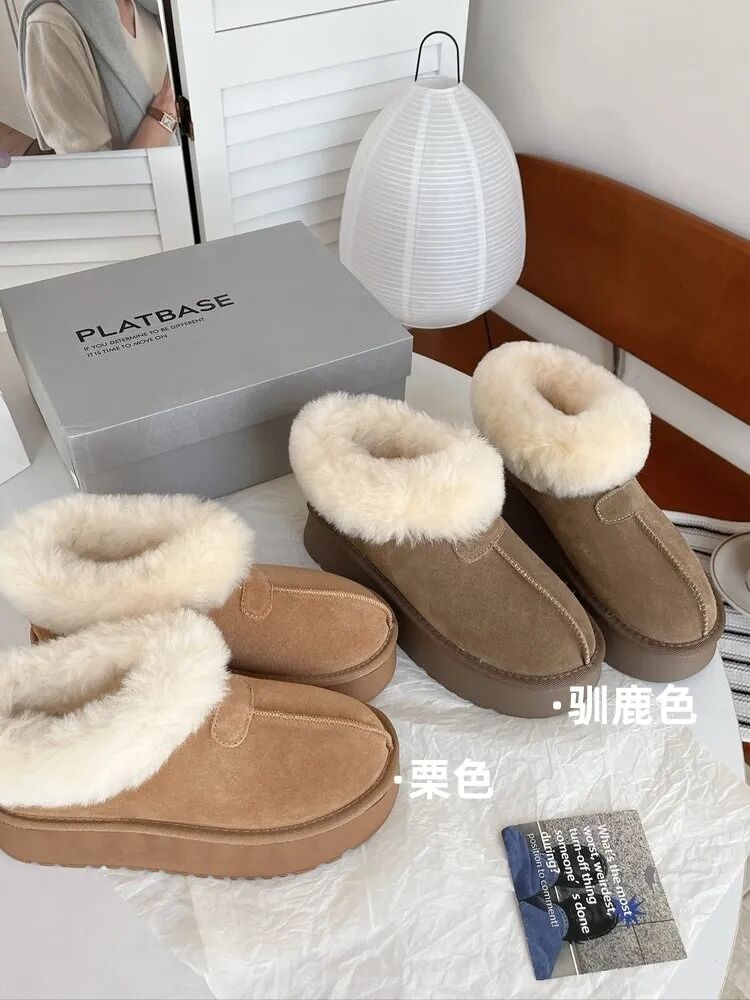 能从 20 岁穿到 60 岁、承包整个冬日温暖“百搭单品”,非这款 PLAT BASE 真皮羊毛雪地靴莫属。