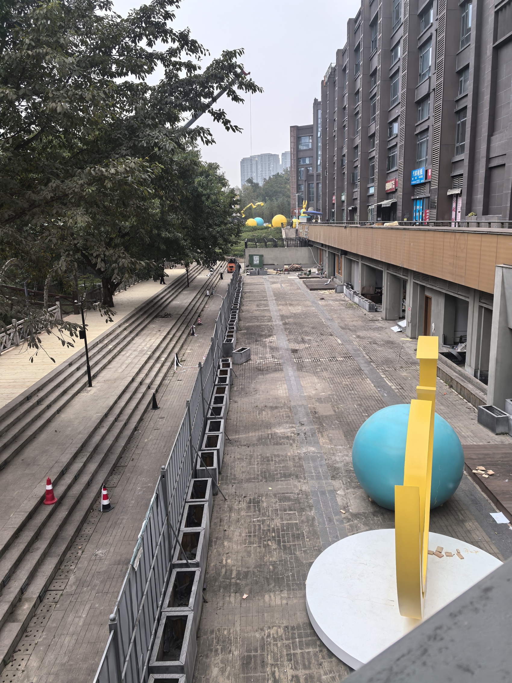 金房大榕湾小区沿河而建,由多栋高层住宅组成。网友反映的“宠物一条街”项目位于小区6号楼底层商铺区域。6号楼一楼是商铺,楼上则都是公寓住房,该处商铺沿河分布,记者看到,有近10处店面处于打围状态。其中,拐角两处店面围挡上明确标出商家的名字及未来的经营业态——宠咖、洗美、寄养,宠物日托幼儿园、宠物商品零售。