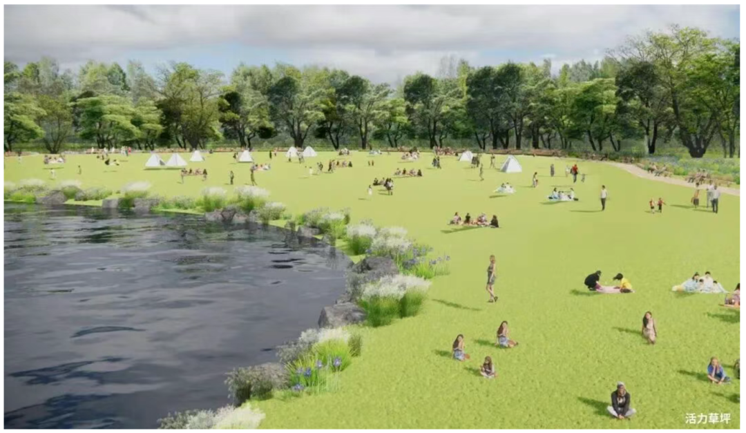 东区打造“活力草坪”。围绕约9000平方米的大草坪,拓宽园路、增设座椅,并将原先的林下广场升级为“森林会客厅”,打造集运动、社交、野餐为一体的自由活动空间。