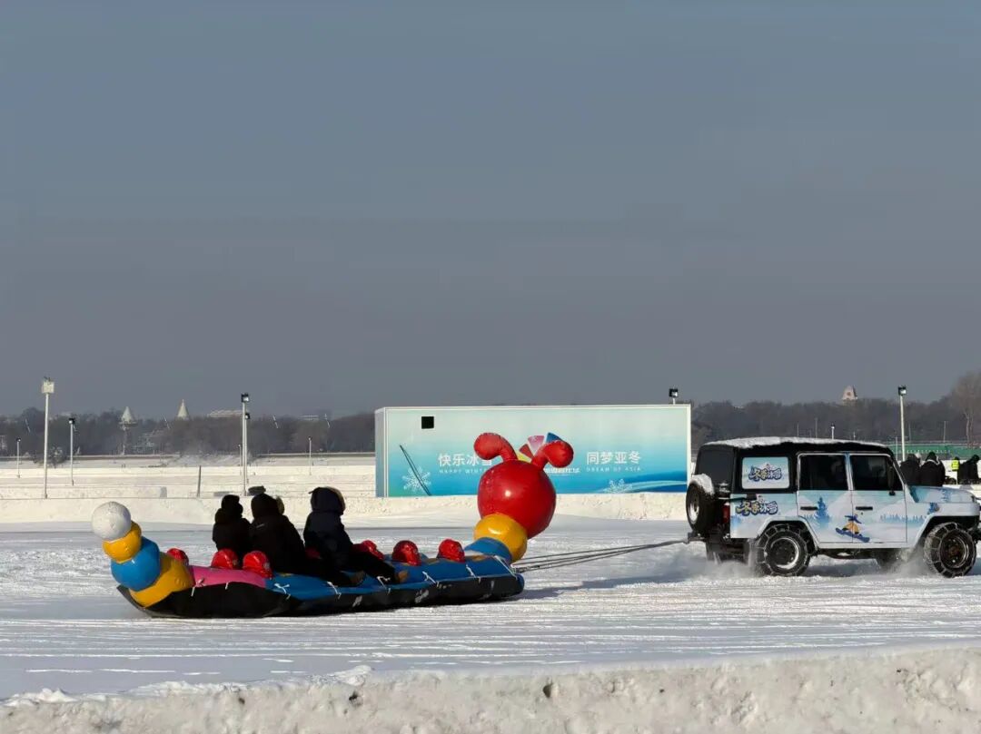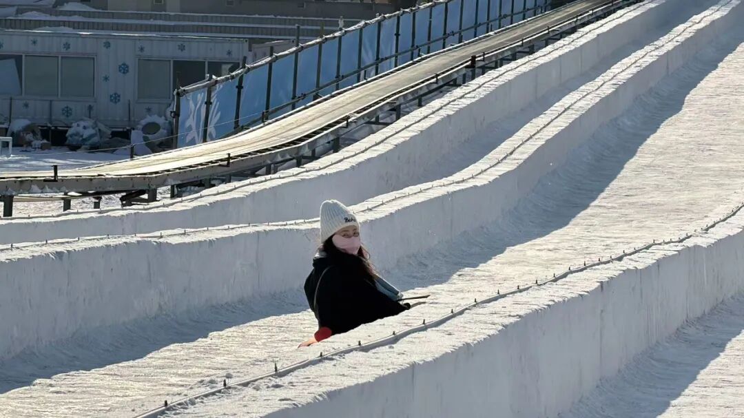 记者注意到,园区内超60项游乐项目覆盖全年龄段,每位游客都能找到“心头好”:雪滑梯上,尖叫声与欢呼声此起彼伏,冰雪体验的欢乐瞬间具象化;雪地极速漂移专区,游客们坐在定制的防护器械上,感受风驰电掣的快感;冰雪气垫船、冰雪机车、抽冰尜、冰爬犁等项目前更是排起小长队,大家在速度与激情中触摸冰雪温度,在传统民俗项目里品味北方风情。