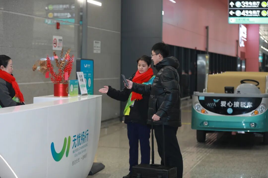机场工作人员在无忧畅行平台为旅客提供服务。