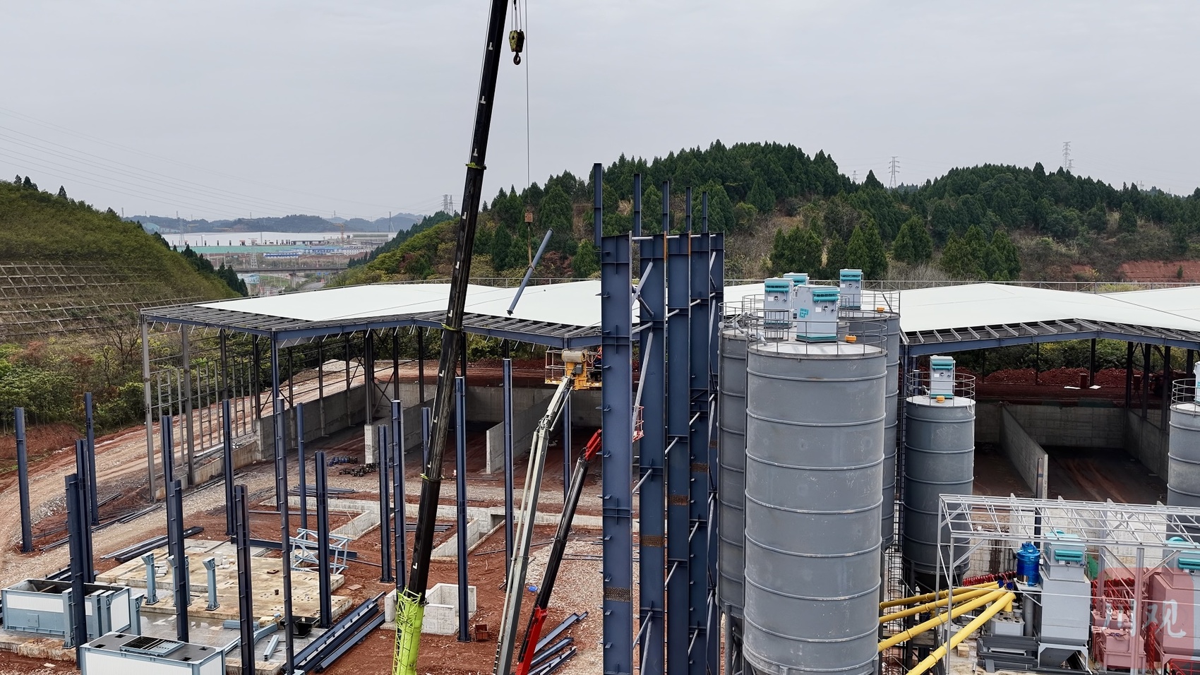 该产业园占地约58.4亩,规划建设面积约2.41万平方米。园区核心是沥青混凝土、商品混凝土和水稳料三条生产线。项目建成后,将具备覆盖遂宁全市相关建材需求的能力。现场代表周扬表示,目前1号生产车间正在进行钢结构和设备安装,综合楼与实验楼等配套建筑也将在春节前完成主要工程。