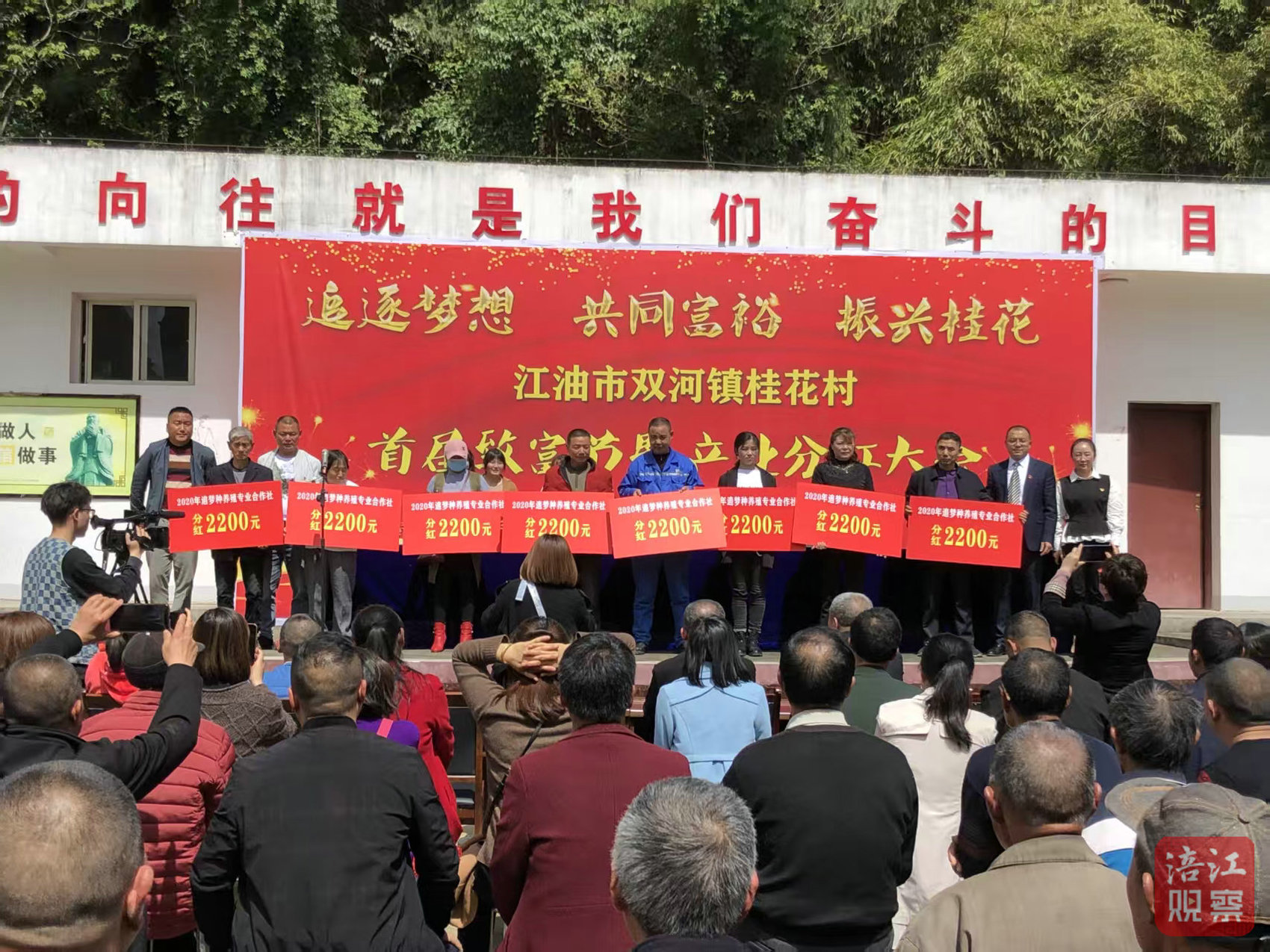 集体经济的红利,最终惠及全村百姓。桂花村将“谷雨”定为“致富节”,为88户以产业扶持周转资金入股的脱贫户发放基础性分红,五年累计分红13.65万元;为185万元现金入股的村民发放贡献性分红,五年累计分红约190.55万元,让村民切实尝到了产业发展的甜头。