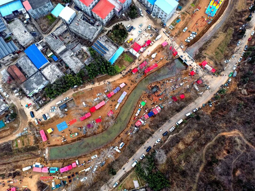 消息传开后,往日宁静的梨园河村变得热闹非凡。涌水点附近的河岸形成了一个临时小集市,村民们摆摊售卖热饮、小吃和农产品。上百名主播全天候直播泉水复涌的景象,直播间人气不断攀升。