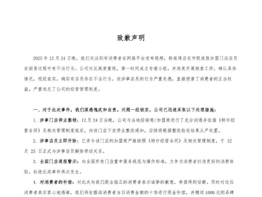 品牌方客服人员表示涉事门店暂停营业,已开展内部核查,一经查实,将严肃处理当事人并加强门店管理。