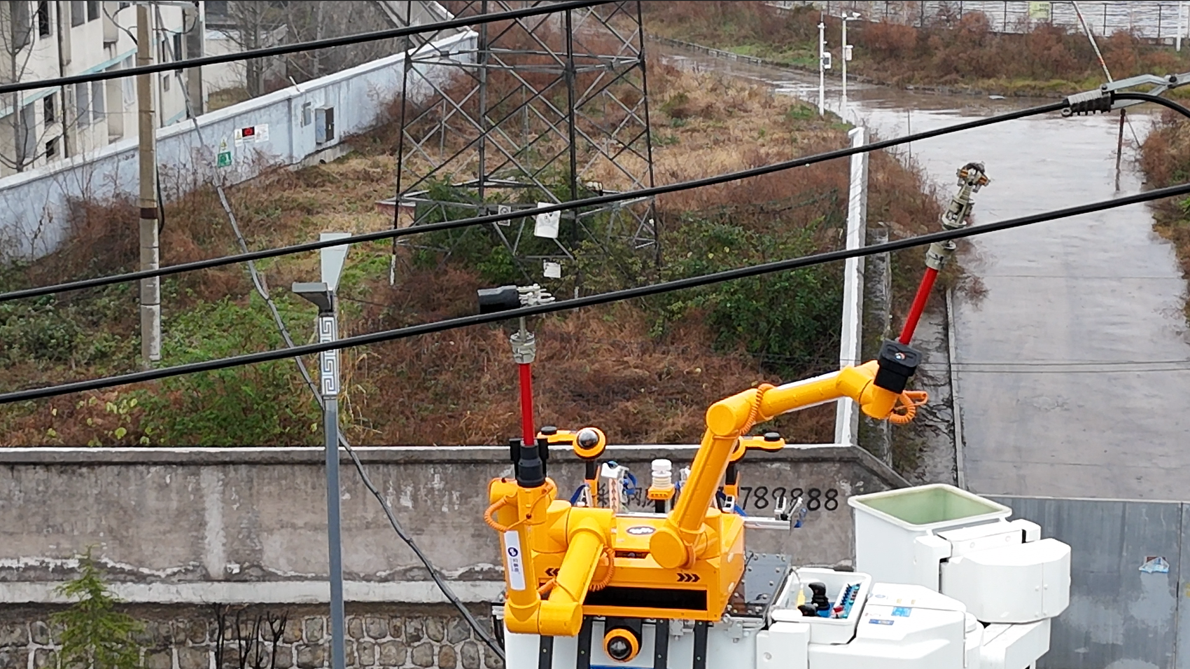 12月25日,在达州市宣汉县柳池工业园区10千伏方园2线北延支线作业现场,一台带电作业机器人“伸出”机械臂,精准完成抓线、断线、接线等一系列操作——这是达州电网首次使用机器人开展带电作业。从人员“上杆”到机器人“上岗”,传统高危作业模式正在发生智慧转变。
