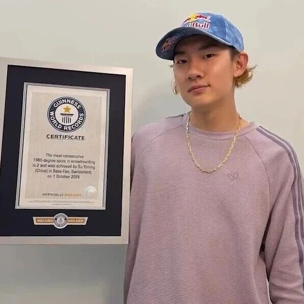 吉尼斯纪录网站25日发布的信息显示,该组织确认中国单板滑雪运动员苏翊鸣创造了“一次连贯滑行内完成单板滑雪1980度转体次数最多”的吉尼斯纪录。