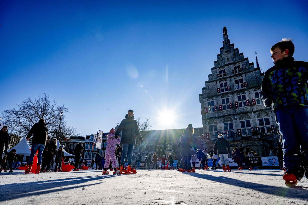 12月24日,人们在荷兰豪达一处溜冰场溜冰。