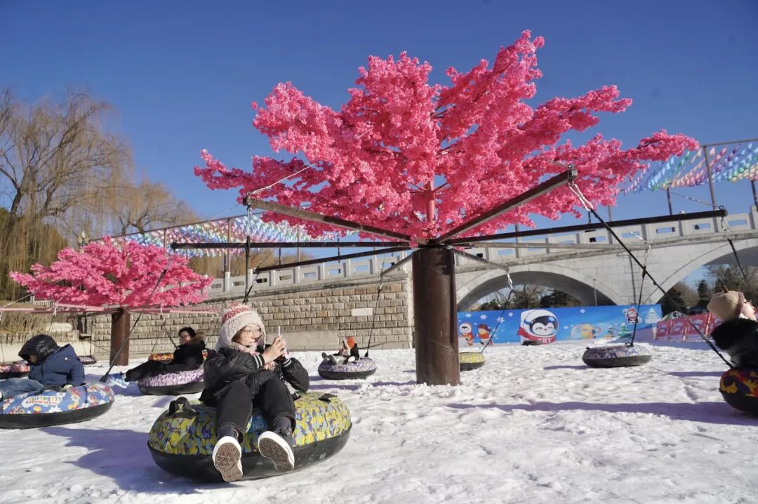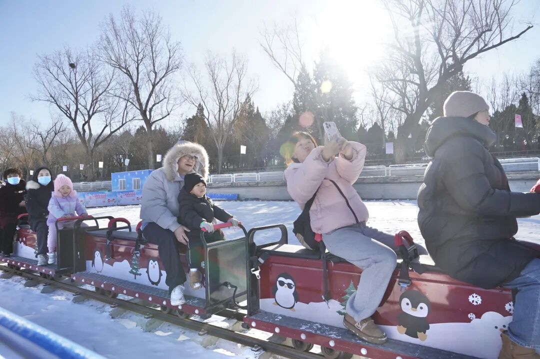 在冰雪嘉年华上,不同年龄段的游客都能找到属于自己的快乐。记者看到,雪场上不仅有雪上飞碟、冰滑梯等兼具速度与激情的游艺设施,还有适合孩子们体验的雪地悠波球、雪地小火车、雪地机械乐园等亲子类游乐项目。今年,热门项目雪上飞碟升级了双侧魔毯上行模式,降低游客体力消耗。此外,备受游客喜爱的冰滑梯则由单滑道升级为双滑道,大幅缩短游客排队等候时间,为游客带来更畅快的滑行体验。