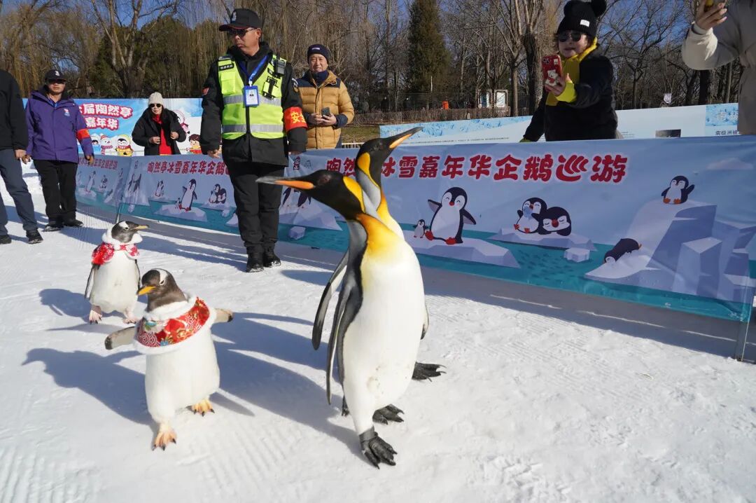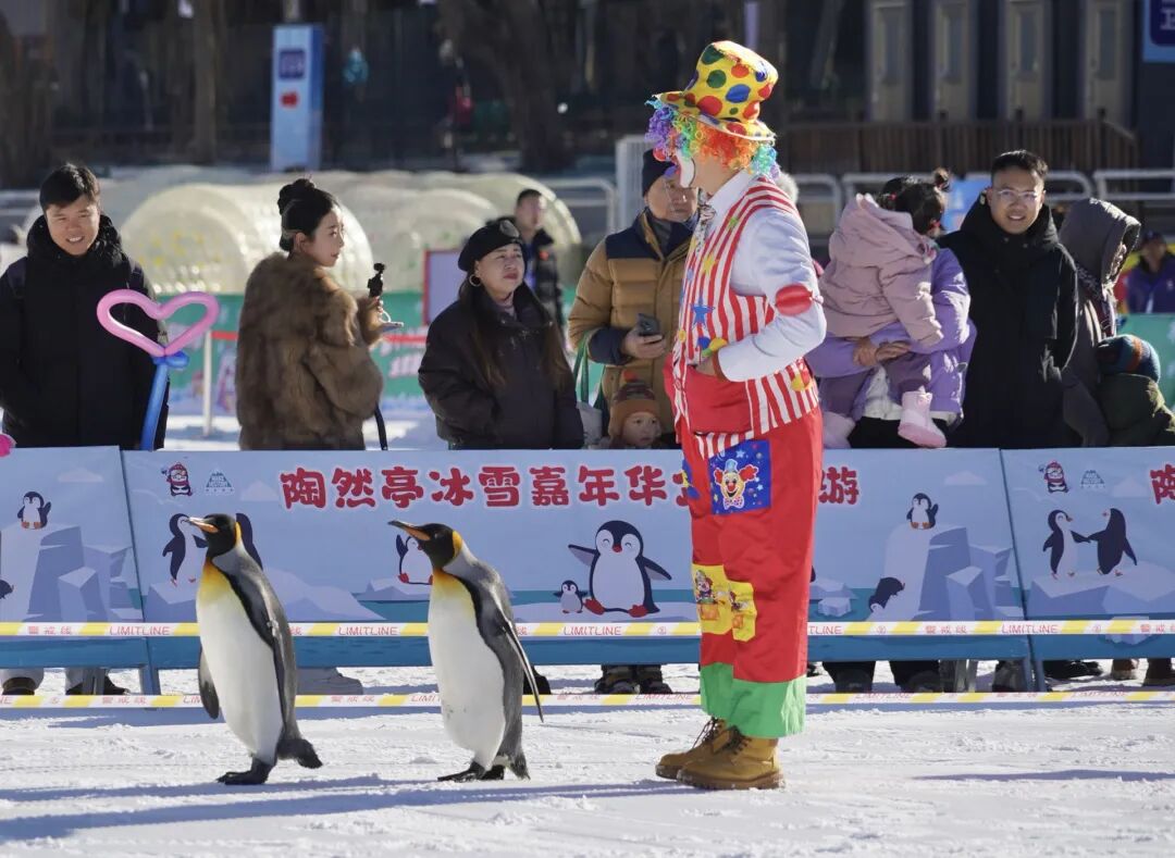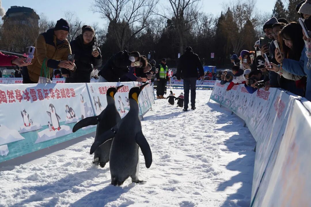 “快来看!小企鹅排着队走出来了!”陶然亭每年的冰雪嘉年华上,企鹅观赏区都是一大亮点。上午10点多,企鹅巡游开始了,王企鹅、巴布亚企鹅拍打着小翅膀走来,憨态可掬的模样让人忍俊不禁。记者了解到,本届冰雪嘉年华不仅提升了企鹅观赏区的整体观赏性,还在企鹅巡游演出后增加了小丑互动秀,让游客接连欣赏趣味十足的表演。