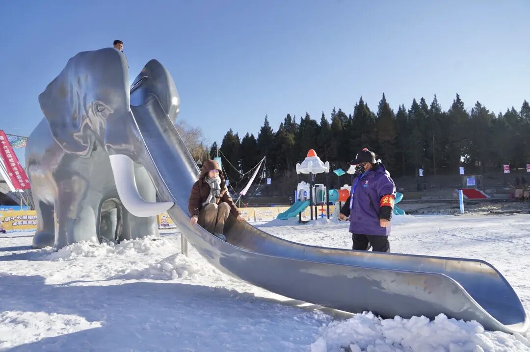 记者了解到,由于陶然亭公园建设升级与设施迭代,园内的大象滑梯曾暂别公众视野。如今,这座承载着几代人温情回忆的滑梯以全新材质在本届冰雪嘉年华中焕新亮相,令不少游客直呼惊喜。