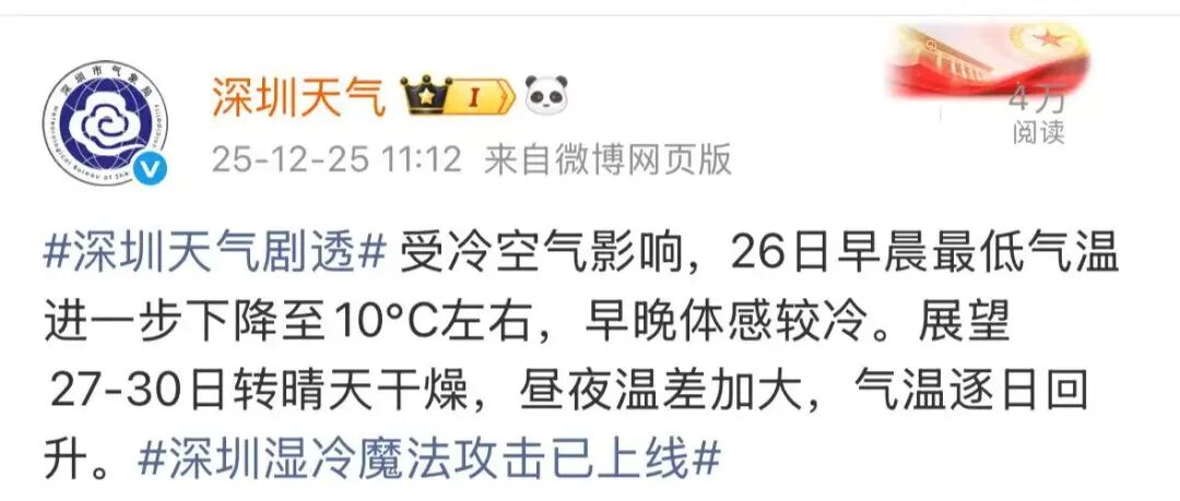 深圳气温骤降