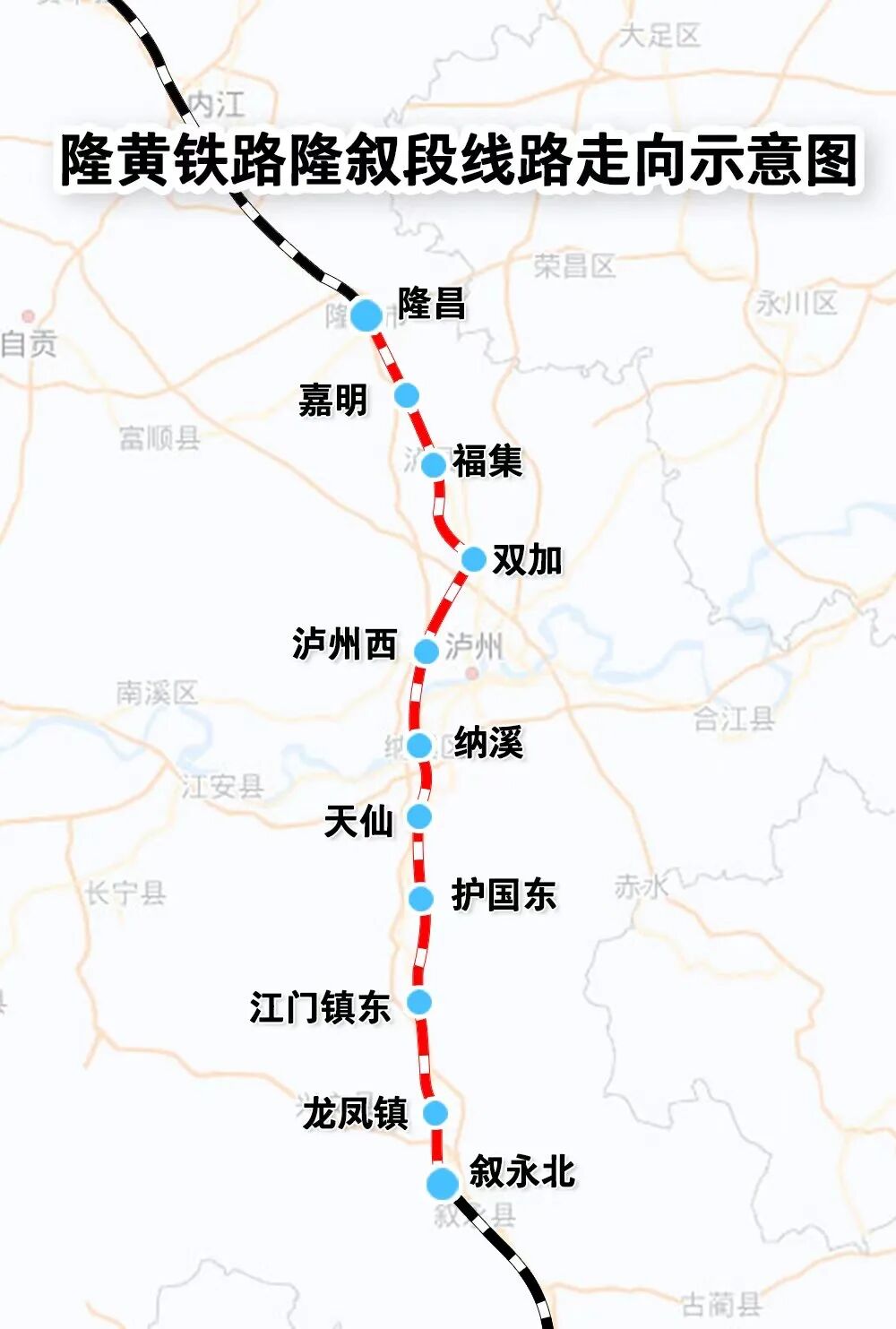 隆泸叙铁路是国家《西部陆海新通道总体规划》西线铁路通道重要组成部分,自成渝铁路隆昌站引出,途经泸州市泸县、龙马潭区、江阳区、纳溪区、叙永县,终至叙毕铁路叙永北站。