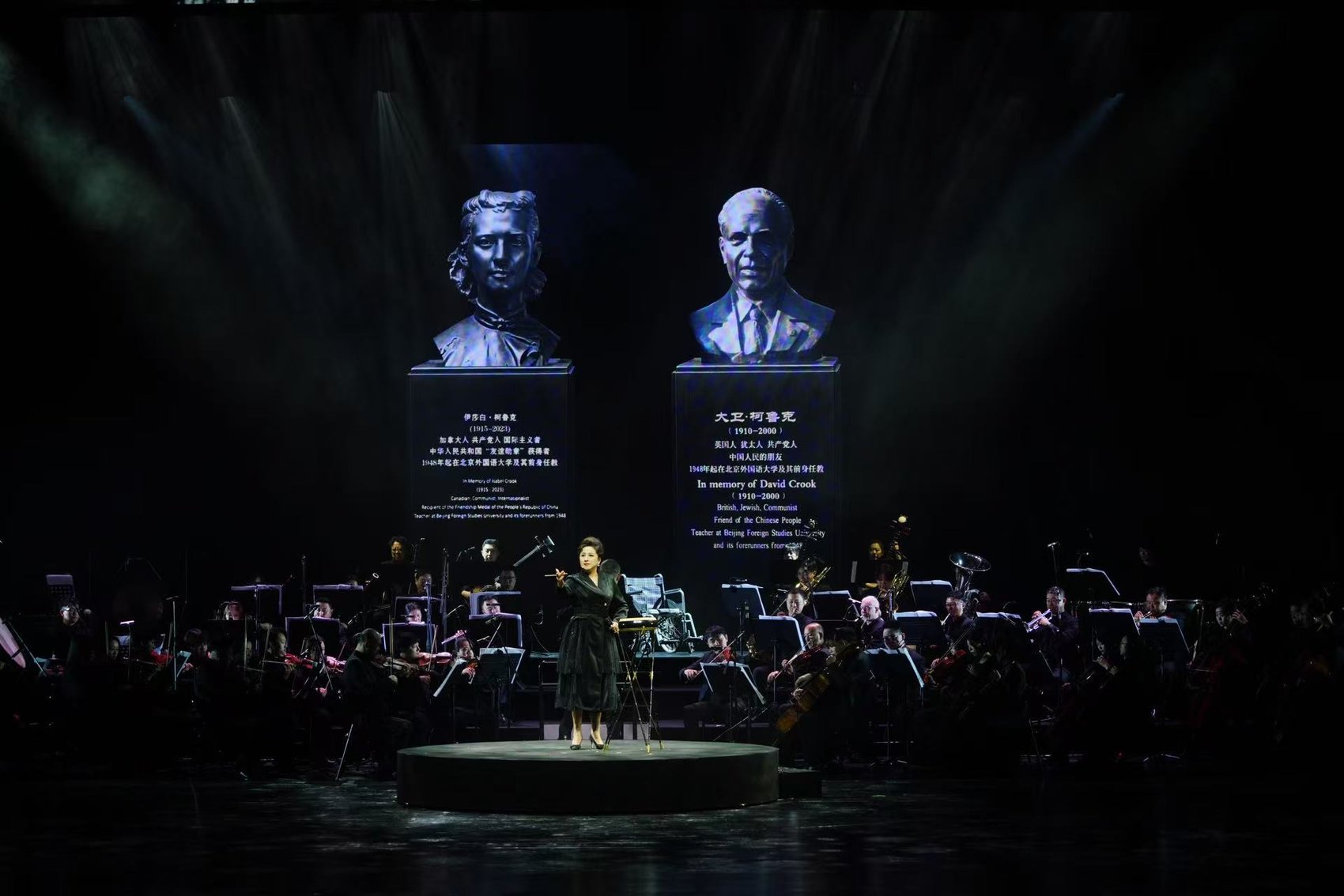 在舞台呈现上,作品划分了曲艺演唱区、交响乐队伴奏区、主持人阅读串联区、大屏幕影像区及纱幕影像区五个表演区域,构建出层次丰富的艺术空间。此外,作品还融入多媒体视觉与AI技术,穿插大量珍贵历史影像,使观众在视听交融中感受艺术与精神的双重震撼。