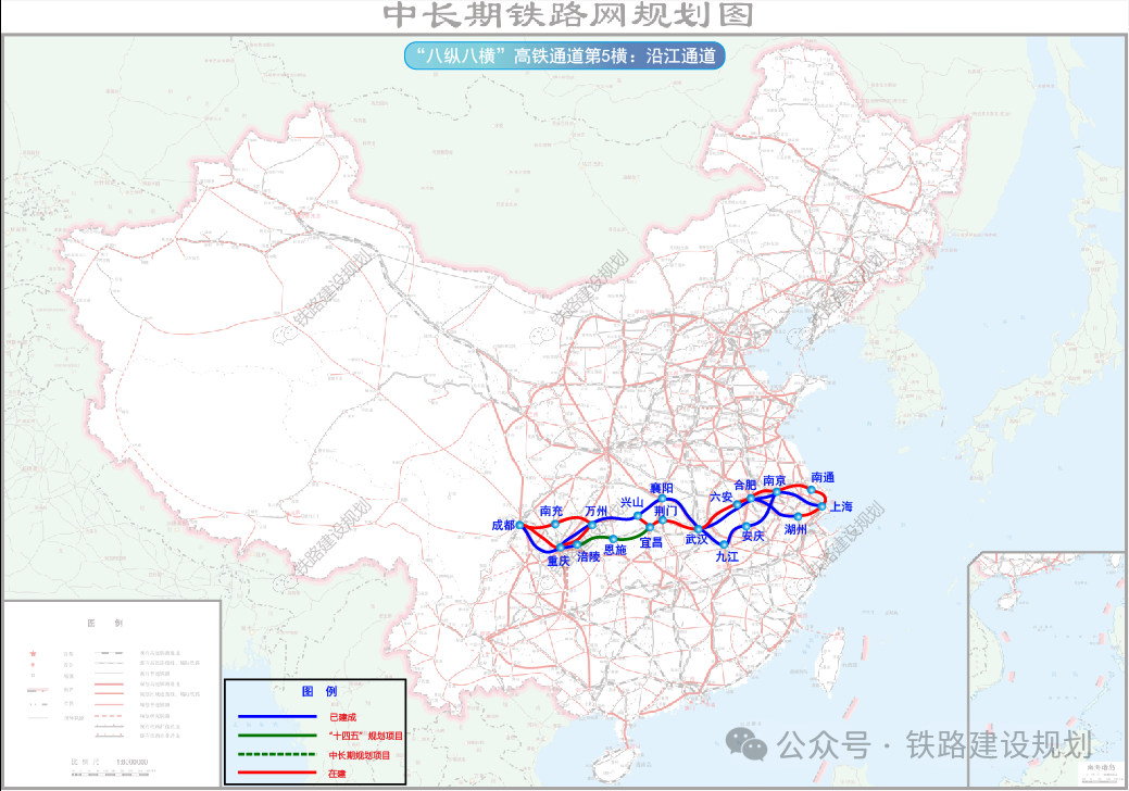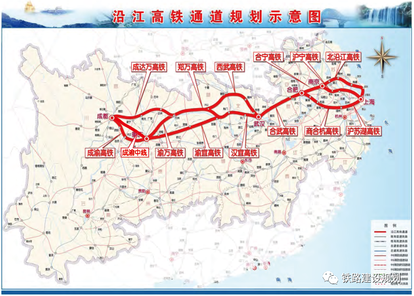 由于中长期规划出台较早,沿江通道大部分路段规划利用既有线,包括合武铁路、汉宜铁路、宜万铁路、渝利铁路、达成铁路等,时速仅160-250公里,通道能力大大受限。