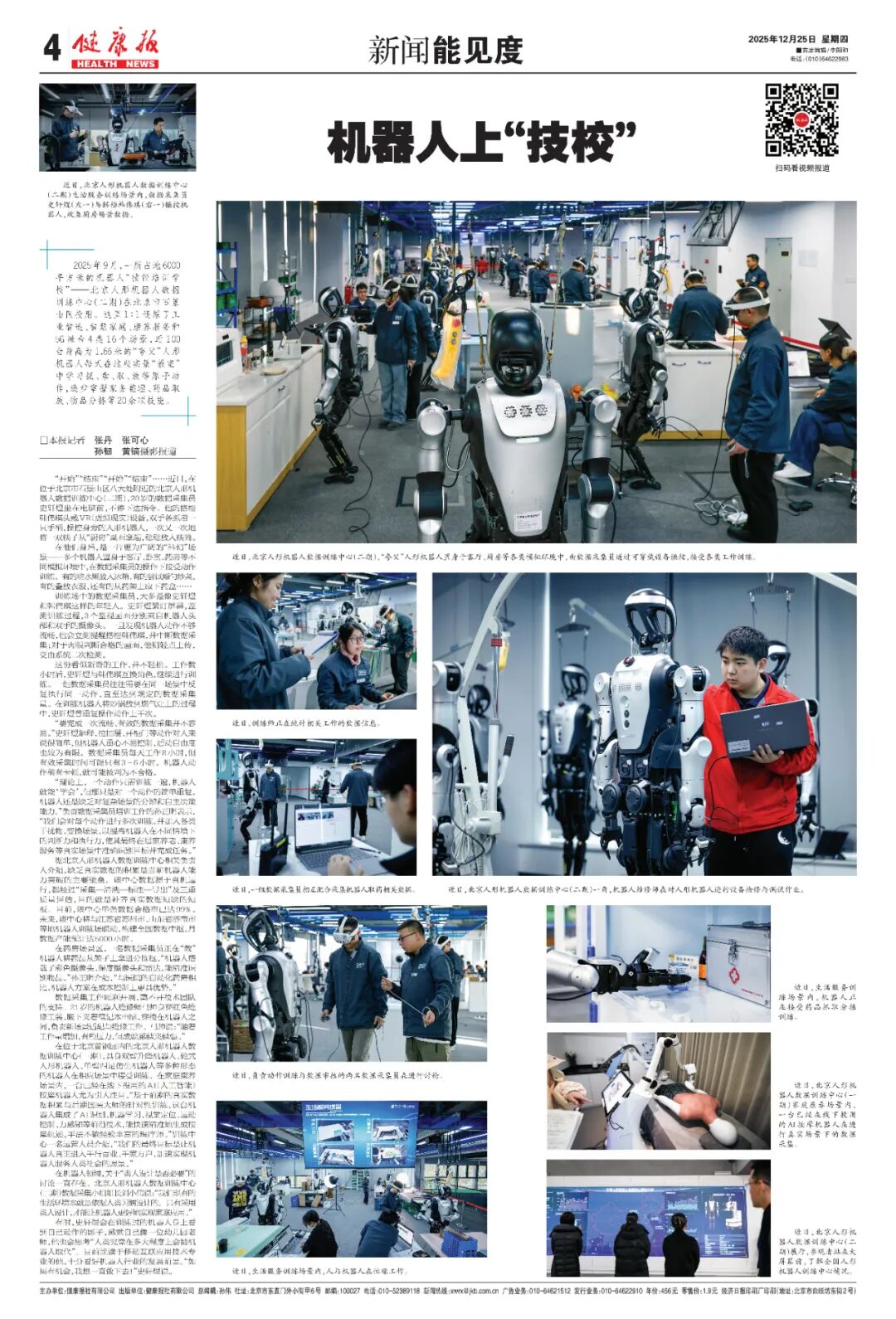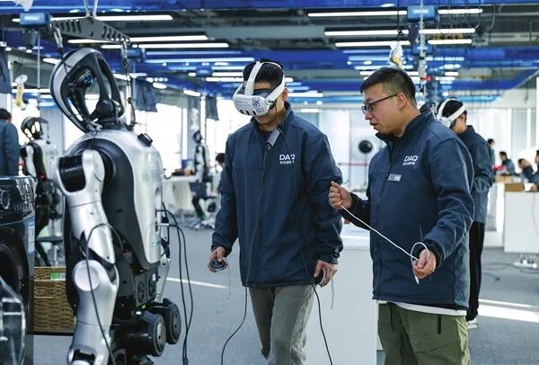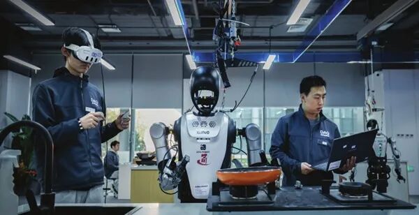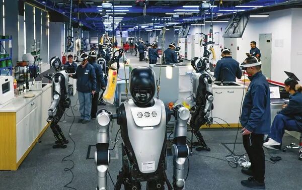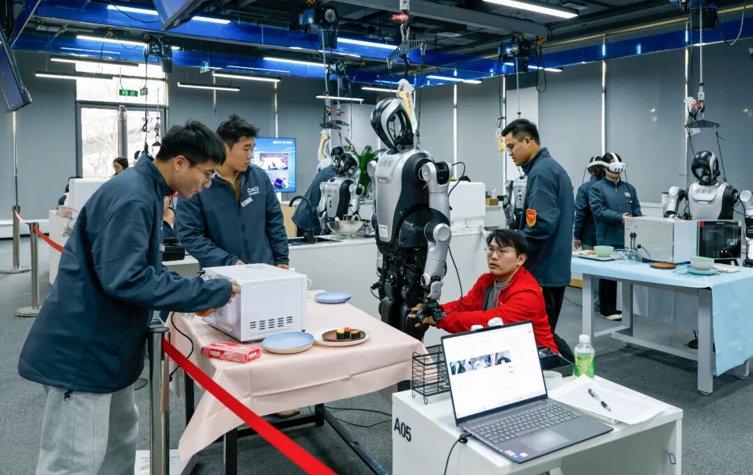 2025年9月,一所占地6000平方米的机器人“技能培训学校”——北京人形机器人数据训练中心(二期)在北京市石景山区投用。这里1∶1还原了工业智造、智慧家庭、康养服务和5G融合4类16个场景,近100台身高为1.66米的“夸父”人形机器人每天在这些实景“教室”中学习抓、拿、取、放等原子动作,逐步掌握家务整理、药品取放、物品分拣等20余项技能。