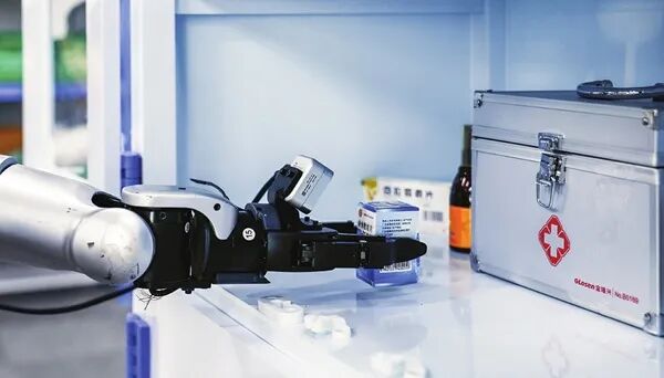 近日,生活服务训练场景内,机器人正在接受药品抓取分拣训练。