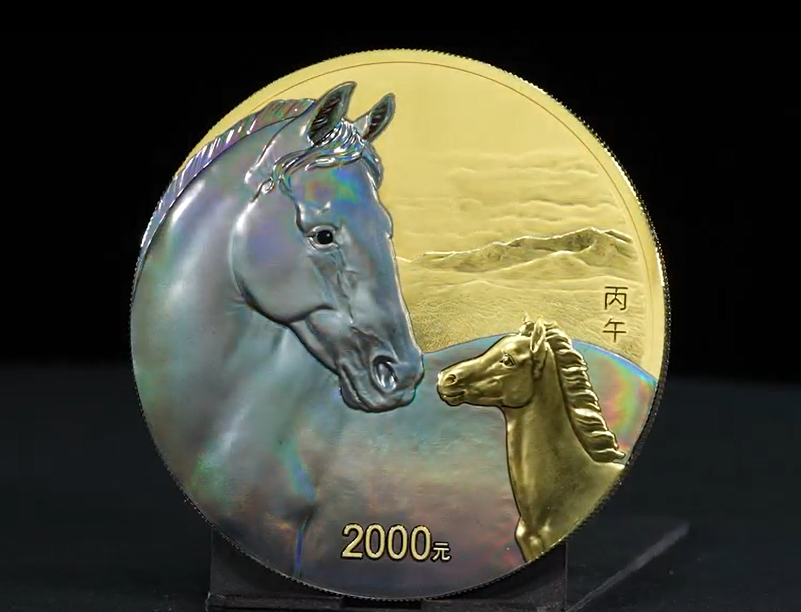 2026中国丙午(马)年150克金币币面以“咫尺千里”的中国画美学为内核,在有限空间去铺展意蕴——远山的苍茫勾勒出客观永恒的自然图景,近处的情感刻画则凝聚着主观瞬间的生命温度,宏大与微小的鲜明对比,恰是我想传递的宇宙观与生命观:在广袤自然的映衬下,个体虽显渺小,但真挚的情感(如孩子上学前的陪伴时光)兼具瞬间珍贵与永恒价值;它既让我们懂得珍惜转瞬即逝的当下,感受爱的宏大力量,也印证了那些纯粹的情感共鸣,足以跨越时光维度,成为与自然永恒相呼应的生命亮色。