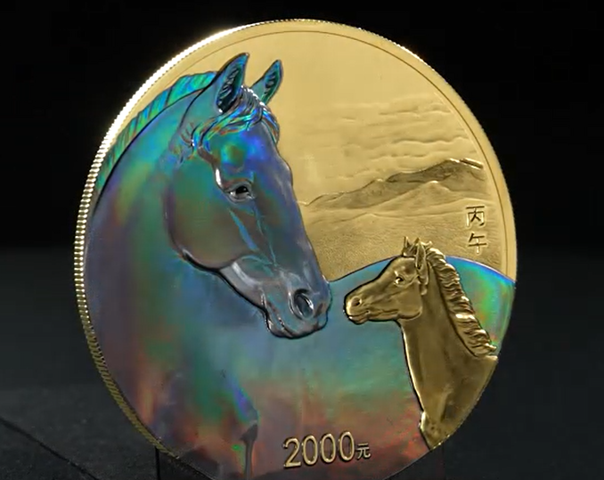 设计初期并不需要太多限制,因为现代工艺技术的丰富性与可实现性已经给了设计师许多自由,但在设计构思阶段,还是需要提前考量后期工艺处理的效果,例如,如何通过研磨工艺强化质感、怎样更好地凸显主题、主体等。在图稿入选且确定产品规格尺寸后,就需要依据技术落地条件对画面繁简程度进行调整,以创造最佳的呈现效果。对丙午(马)年150克金币背面图案的主马,我就曾考虑过采用本色研磨、传递“质朴纯粹”审美基调的处理方式,但最终综合各种考虑后,还是采用了具有独特表现力的镀黑工艺。