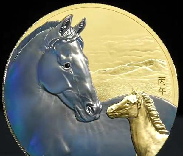 2026丙午(马)年150克金币的创作,正是沿着这条文化脉络,以贵金属为载体,通过工艺塑造与美学重构,力求在方寸间铺展情感与意境,勾勒出传统与现代的交融,让亲情守护的温情与天地辽阔的气韵得以生动呈现。