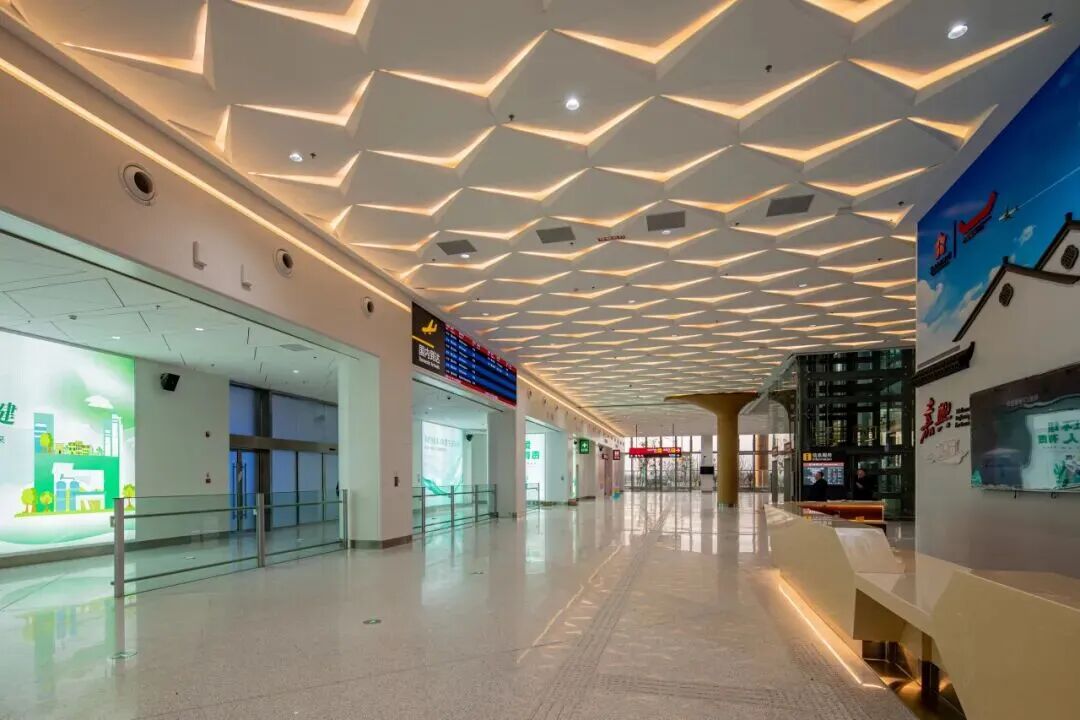 据悉,嘉兴南湖机场航站楼以“禾城玉红、花开嘉兴”为设计取意,将江南文化基因融入现代航空港建设。