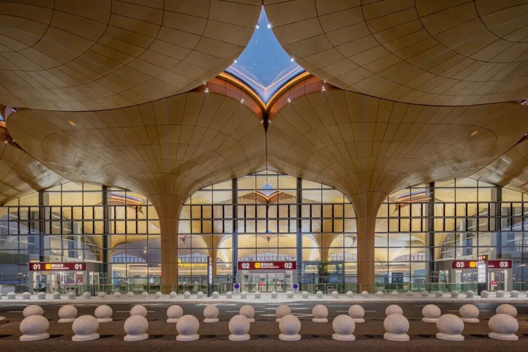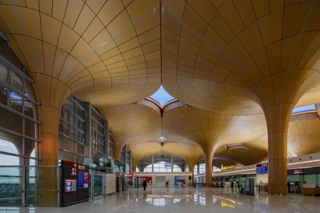 航站楼由22朵嘉兴市花“杜鹃花”构成,航站楼内部的精装修设计与杜鹃花造型紧密结合,南湖涟漪、水波流转,“嘉兴风味”明显。