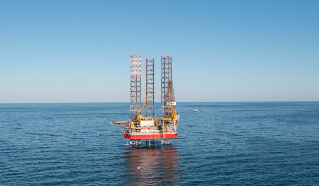 图为:秦皇岛29-6亿吨级发现探井作业现场
