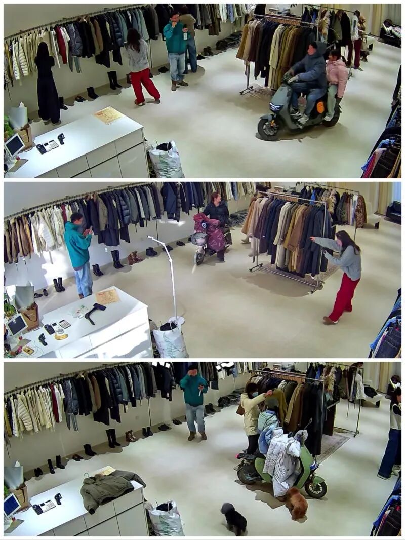 12月24日,上游新闻(报料邮箱:baoliaosy@163.com)记者联系了拍摄视频的王先生,这家店是他老婆开设的女装店,平时他会到店里帮忙。据他回忆:“第一次有顾客骑车进店是12月18日(监控时间显示是12月18日15点59分)。当时我正坐着休息,顾客骑着车就进来了,进来也没问我,就开始选衣服了,选完之后就结账了。”