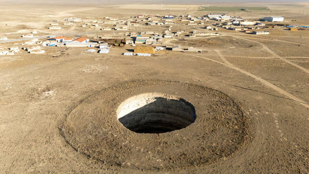 2025年12月19日无人机航拍显示,土耳其科尼亚省一村庄附近出现塌陷坑。环球网援引路透社报道配图