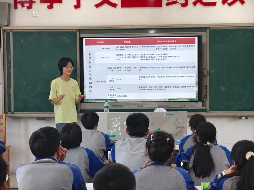 如今,“受助—成长—回馈”的青春接力正在上演。今年夏天,54支由浙财大本科生、研究生组成的资助宣传大使队伍,跨越山海奔赴全国50余个县(市、区),从浙江文成到青海海北,从贵州六盘水到新疆阿克苏,累计行程超3万公里。