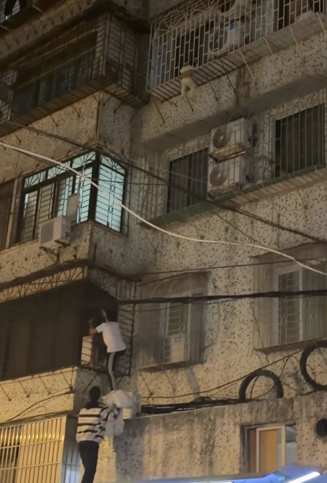 “当时听说有小孩被卡在窗户,我出来后发现可以借助防盗网往上爬,就打了119,很快就爬上去了。”郭颖昕对记者表示,他爬上去时,还有两个小伙子也爬到了二楼平台,扯开厚衣物以防他和小孩从四楼摔下来。