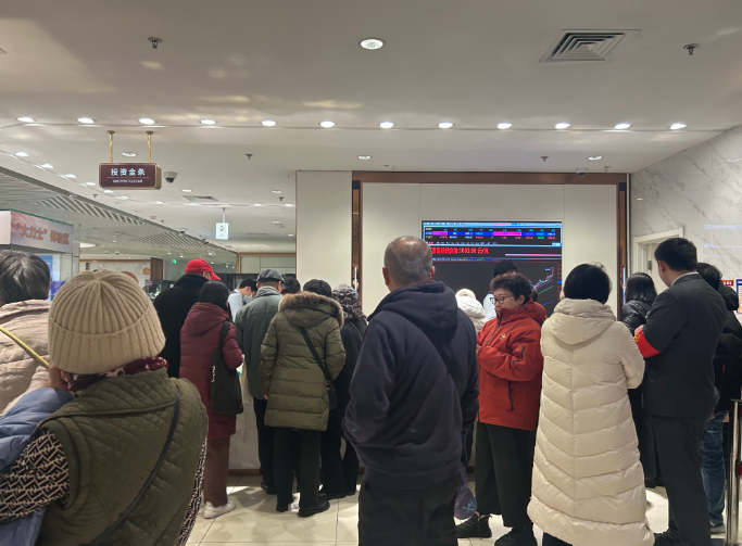 12月24日,北京菜百商场,购金者挤满“投资金”柜台,向柜员喊着要买10克/20克的金条。也有购金者因为挤不进去暗自叹气,只要有人离开,就找准时机“见缝插针”。