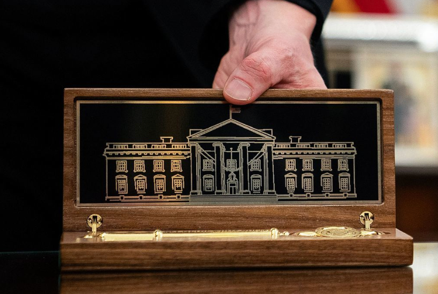 从其公开的照片可以看到,装有钥匙的木盒上雕刻有白宫图案及特朗普的亲笔签名,钥匙则被刻上了“KEY TO THE WHITE HOUSE”(白宫钥匙)的字样。报道称,这把钥匙由特朗普亲自设计,专门用于赠予他视为“特别客人”的外国政要或知名人士。姜勋植称,在李在明之前,获赠该金钥匙者包括以色列总理内塔尼亚胡、日本前首相麻生太郎、特斯拉首席执行官马斯克,以及葡萄牙足球明星克里斯蒂亚诺·罗纳尔多(C罗)等人。