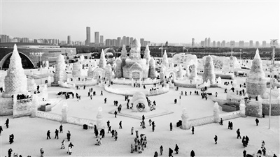 12月17日,黑龙江省哈尔滨市第二十七届哈尔滨冰雪大世界开园。本届园区以“冰天雪地童话世界”为主题,规模为历届之最。袁新宇 摄