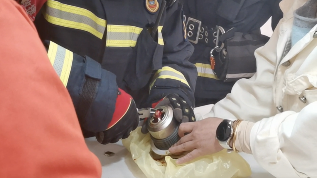 消防员到场后,先将洗菜池从凹槽中取出,再用钳子小心剪开洗菜池下水槽。经过精细操作,女子被卡的手指成功取出,随后前往医院就诊。
