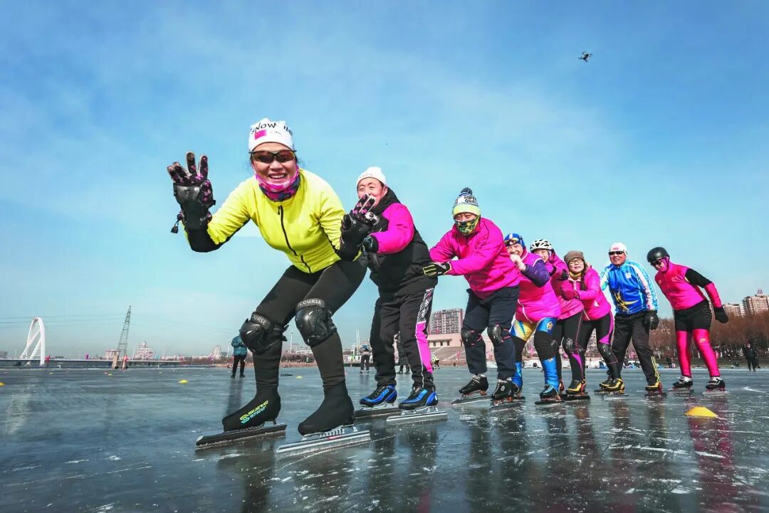 “燃”的体验,还藏在广阔的冰面之上。锦州冰上帆船公开赛,色彩鲜艳的帆船在冰面上疾驰穿梭,借风力滑行,转弯的瞬间溅起一片细碎的冰晶。“这和海上航行完全不同,需要更精准地判断冰面摩擦力和风向,在冰上速度更快!过瘾!”锦州市帆船帆板航海协会会长王启光感慨道。而冰上龙舟赛现场则是另一番热闹景象,号子声震天响,几十支队伍挥桨破冰,龙舟底部的冰刀在冰面划出一道道白色的痕迹。