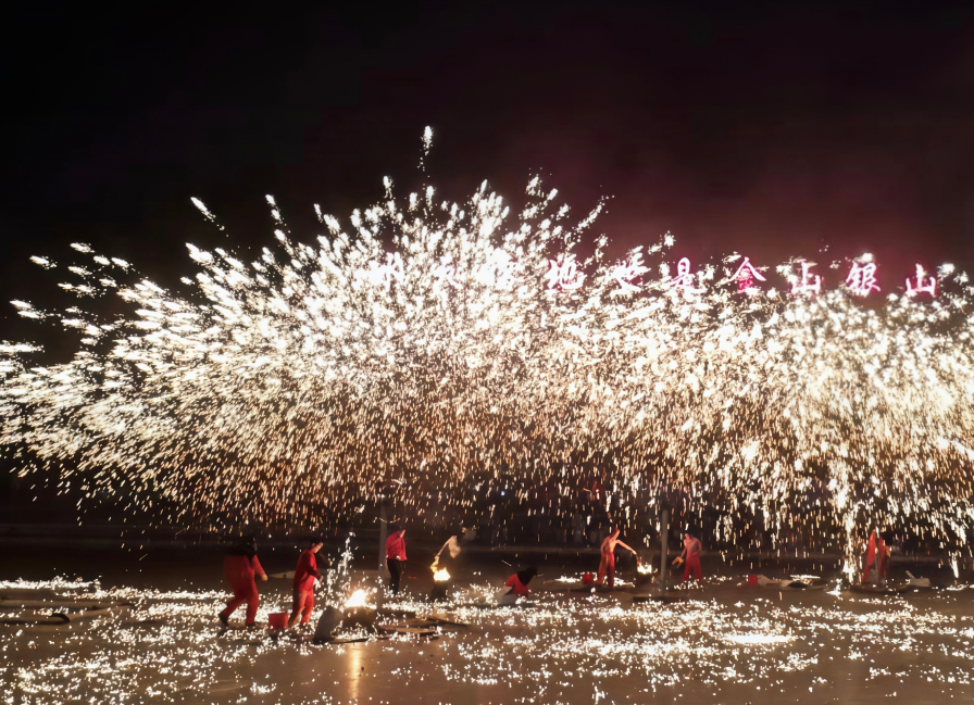 对于钟情冰雪的南方游客而言,葫芦古镇的跨年狂欢堪称冬日限定惊喜,跨年夜的夜空,更将是一场视觉盛宴。在非遗打铁花表演中,滚烫的铁水被匠人奋力击向高空,瞬间化作漫天星火,璀璨夺目;绚烂的烟花在夜空中绽放出五彩斑斓的图案,与打铁花的星火交织成一幅绝美画卷。在“新年快乐”的欢呼声中,许愿气球将带着新年的期盼缓缓升空,人们在冰雪大舞台周围尽情释放激情,感受“关东过大年”满满的幸福感。